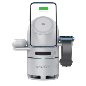 מעמד טעינה אלחוטי משמש כרמקול, מטען טלפון נייד, שעון חכם ואוזניות אלחוטיות בו זמנית,