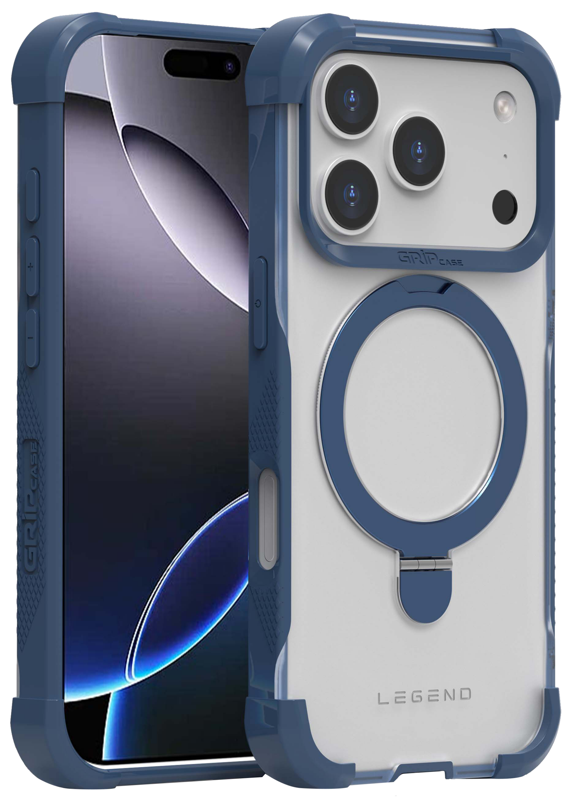 כיסוי לטלפון אייפון 17 פרו מקס לג'נד מאגסייף צבע שקוף כחול Grip Case Legend Magsafe iP 17 Pro Clear Blue