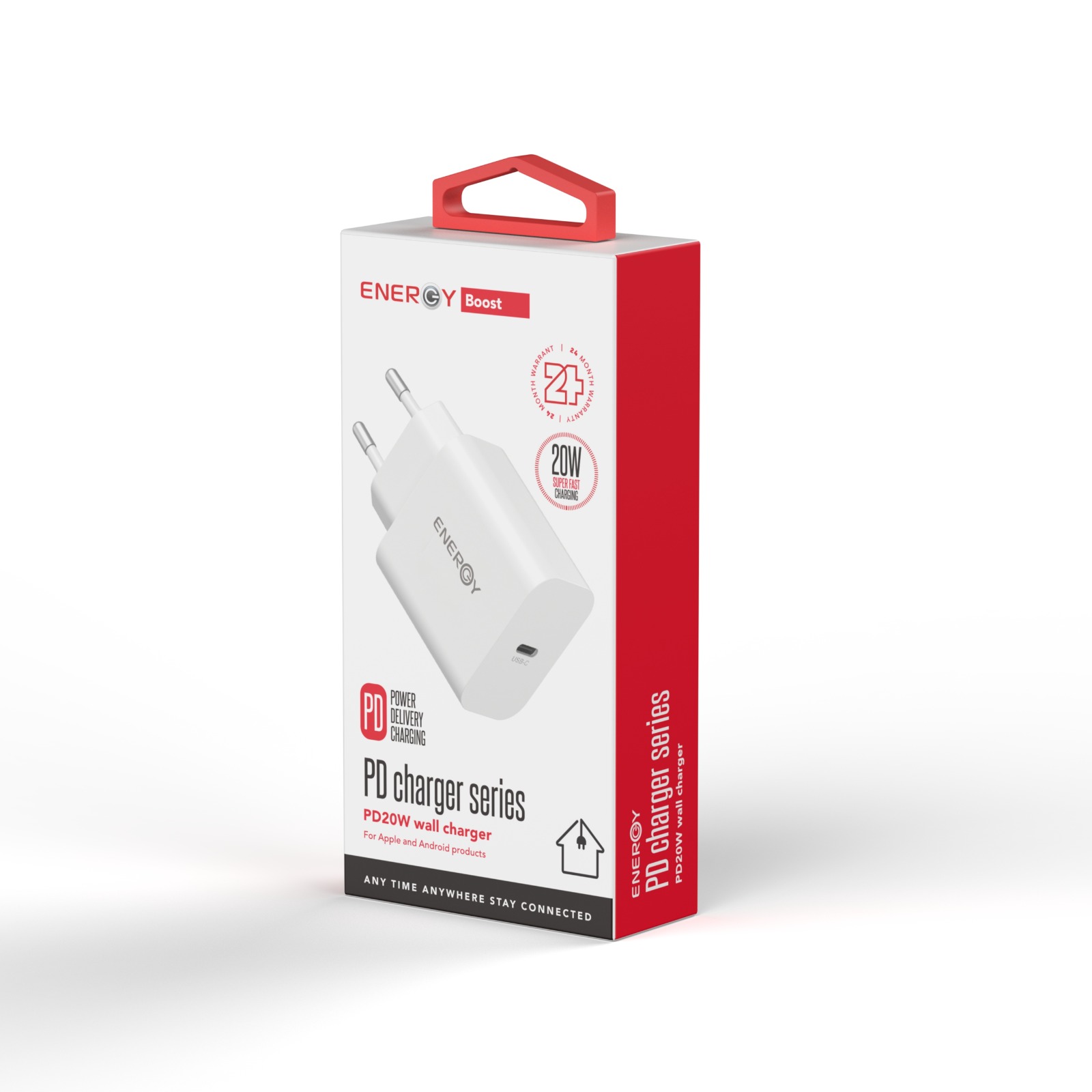 מטען מהיר עם כבל 1.2מ' ENERGY PD20WC1 20W+ C to L MFI 69.90 ₪